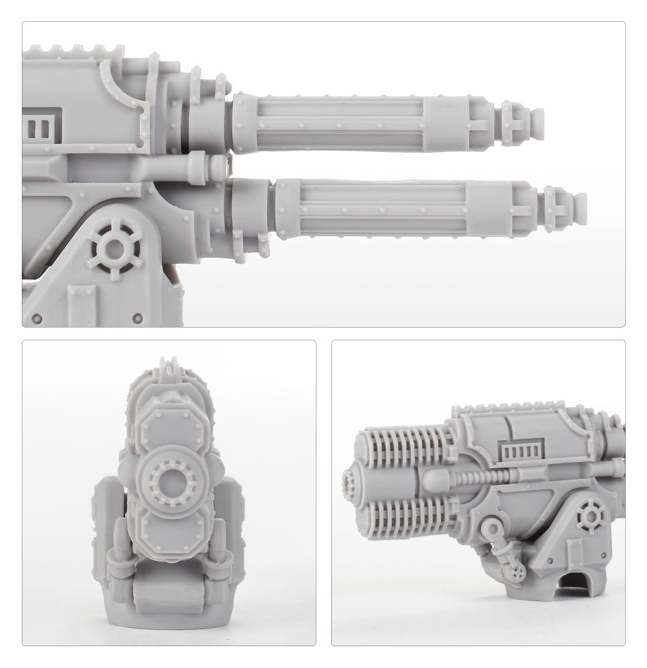 The sheer power, energy and armour-piercing capabilities behind the turbo laser destructors make these paired weapon ideal for taking out enemy Titans. Mounted on a Warlord’s carapace, they complement other heavy weaponry like volcano cannons, turning your Titan into a true god-machine capable of