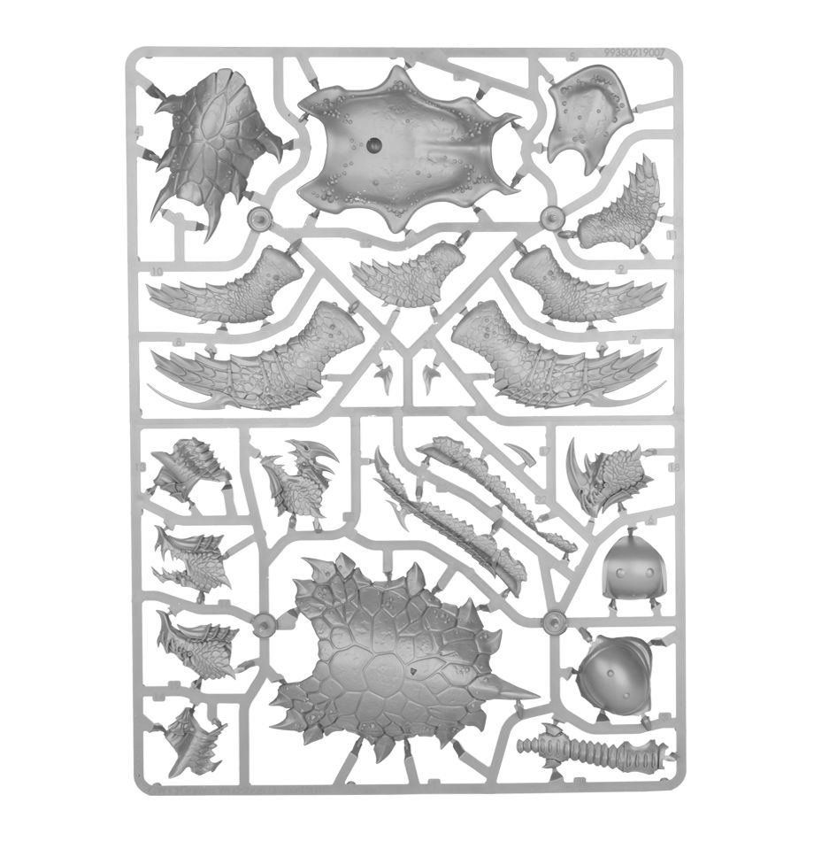Shrugging off enemy missiles, the Akhelian Leviadon plunges into the fray. Scythed fins dismember foes while the beast’s powerful jaws clamp down with enough force to crush tempered steel. Should the aelves on its back come under assault, they strike out with hooks and blades, while the Ma’harr, the master of the reins and a high-ranking Akhelian, impales foes on his twin-pronged spear. Protected by its thick scales and nigh-impenetrable shell, the Leviadon acts as an indomitable anchor point in an Idoneth phalanx. Whether used as a living battering ram or as a mobile weapons platform, these