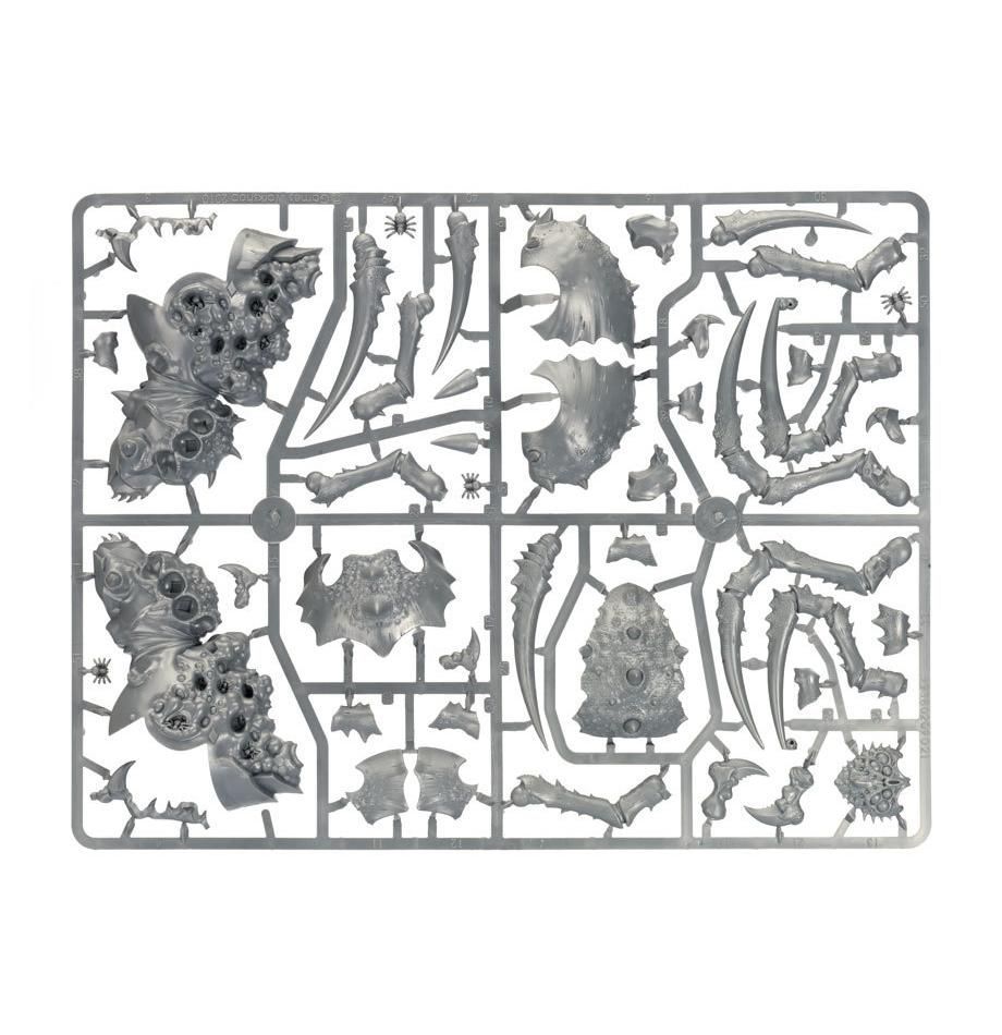 This multipart plastic kit builds a Webspinner Shaman on Arachnarok Spider. A towering beast covered in chitinous plates, the Arachnarok sports eight bladed legs that can be assembled in a variety of poses. The wooden platform on its back hosts a