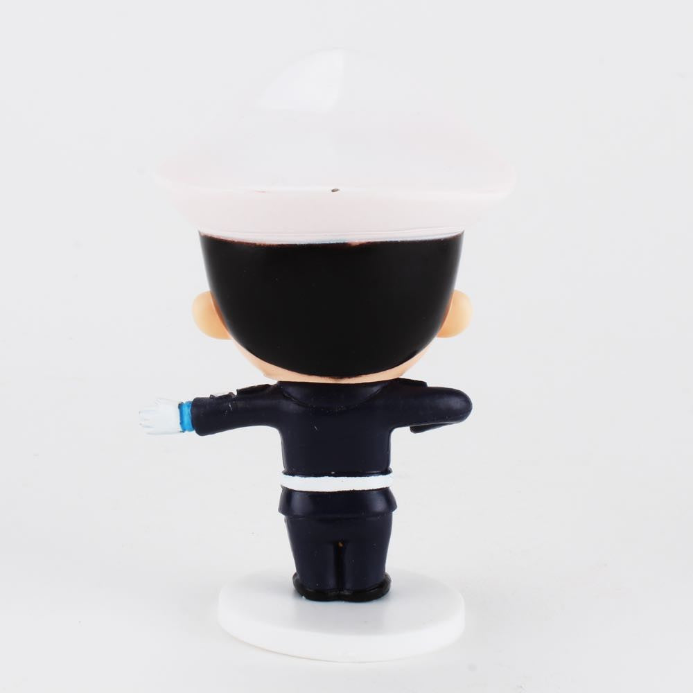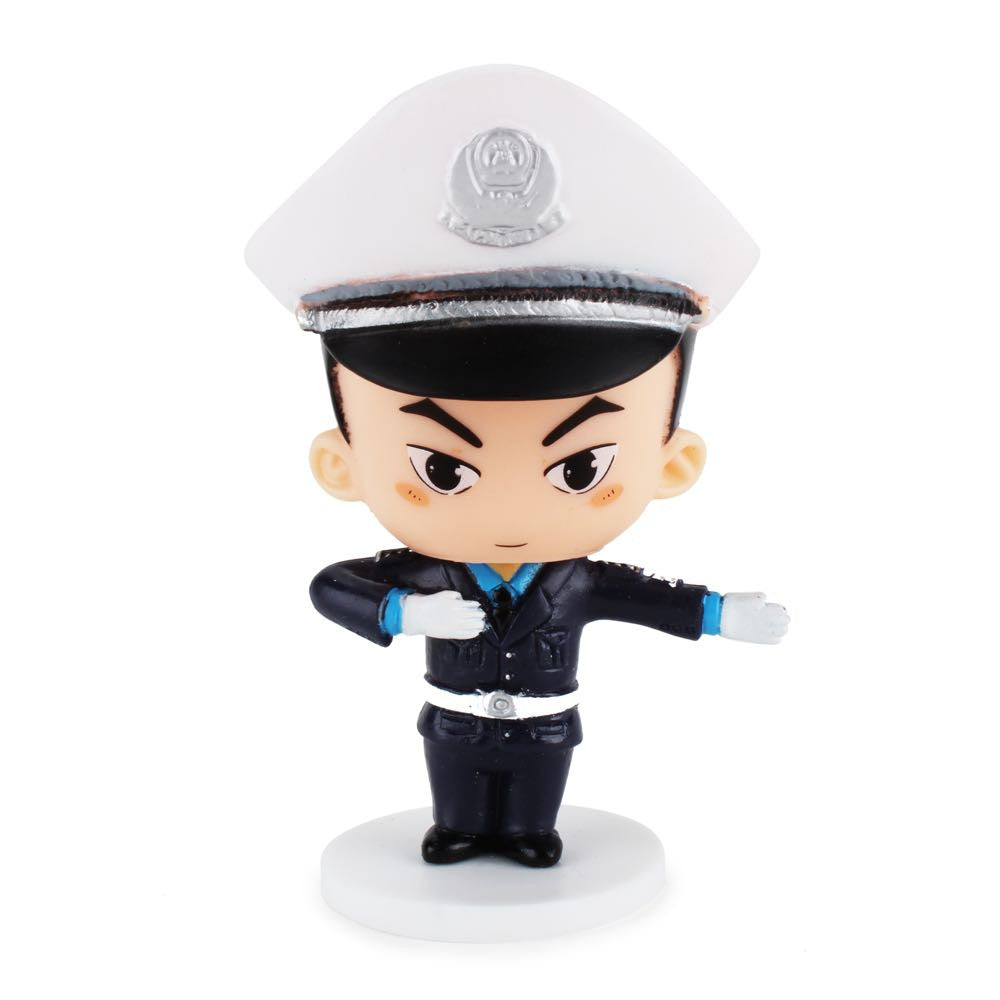 Designed and produced in China. Best Happy Police Friends by designer DG Zhou depict a variety of Chinese police friends in their uniforms. Meet Swat Team Officer Xu. Traffic Cop Huang. the beautiful Patrol Officer Lin. Vice Officer Chen and the always smiling Patrol Officer Wang. Each officer comes with a simple white base. stands approximately 4 inches tall and has a single point of articulation at the neck.