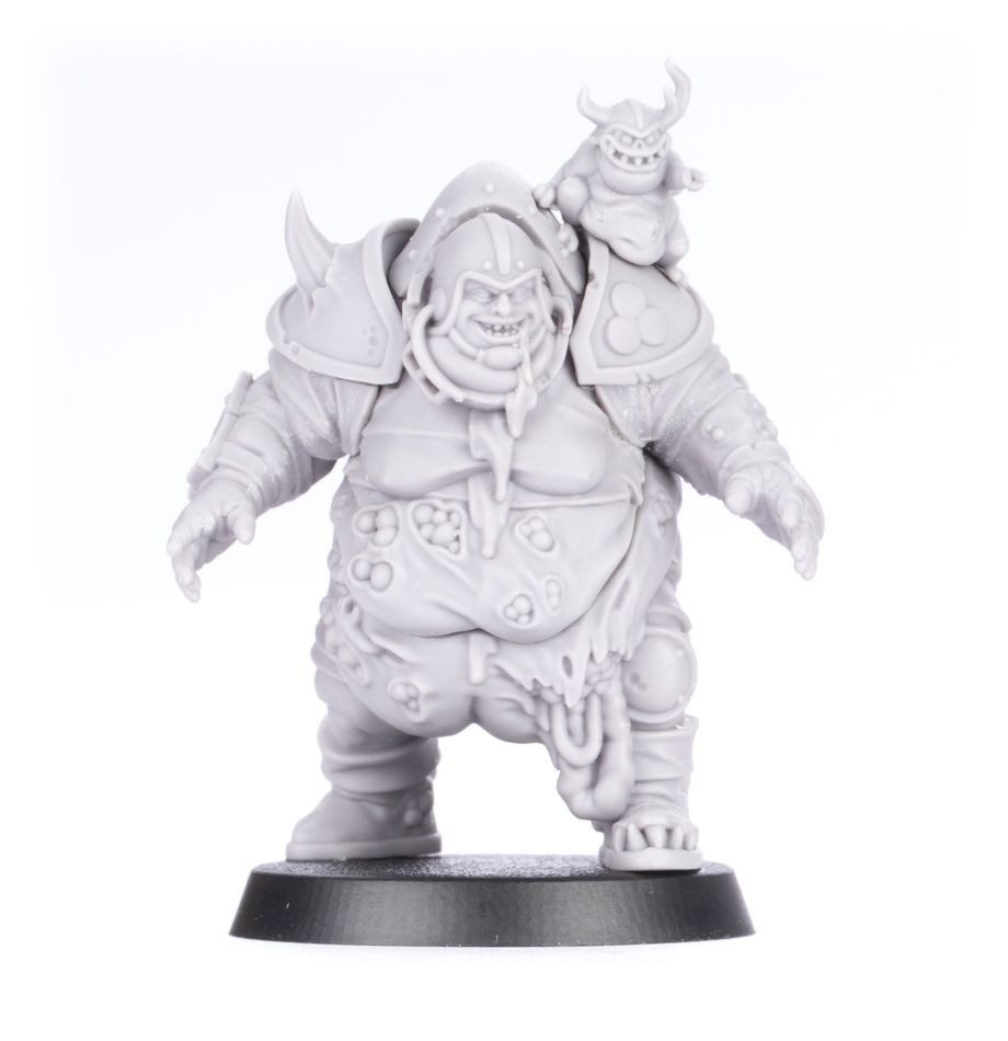Once a decent player brought low by off-field distractions, it took the blessings of Nurgle to elevate Bilerot Vomitflesh to become a true Star Player. His teammates now support his gluttonous lifestyle and he knocks out more than his share of opponents with powerful punches and fiendish fouls.