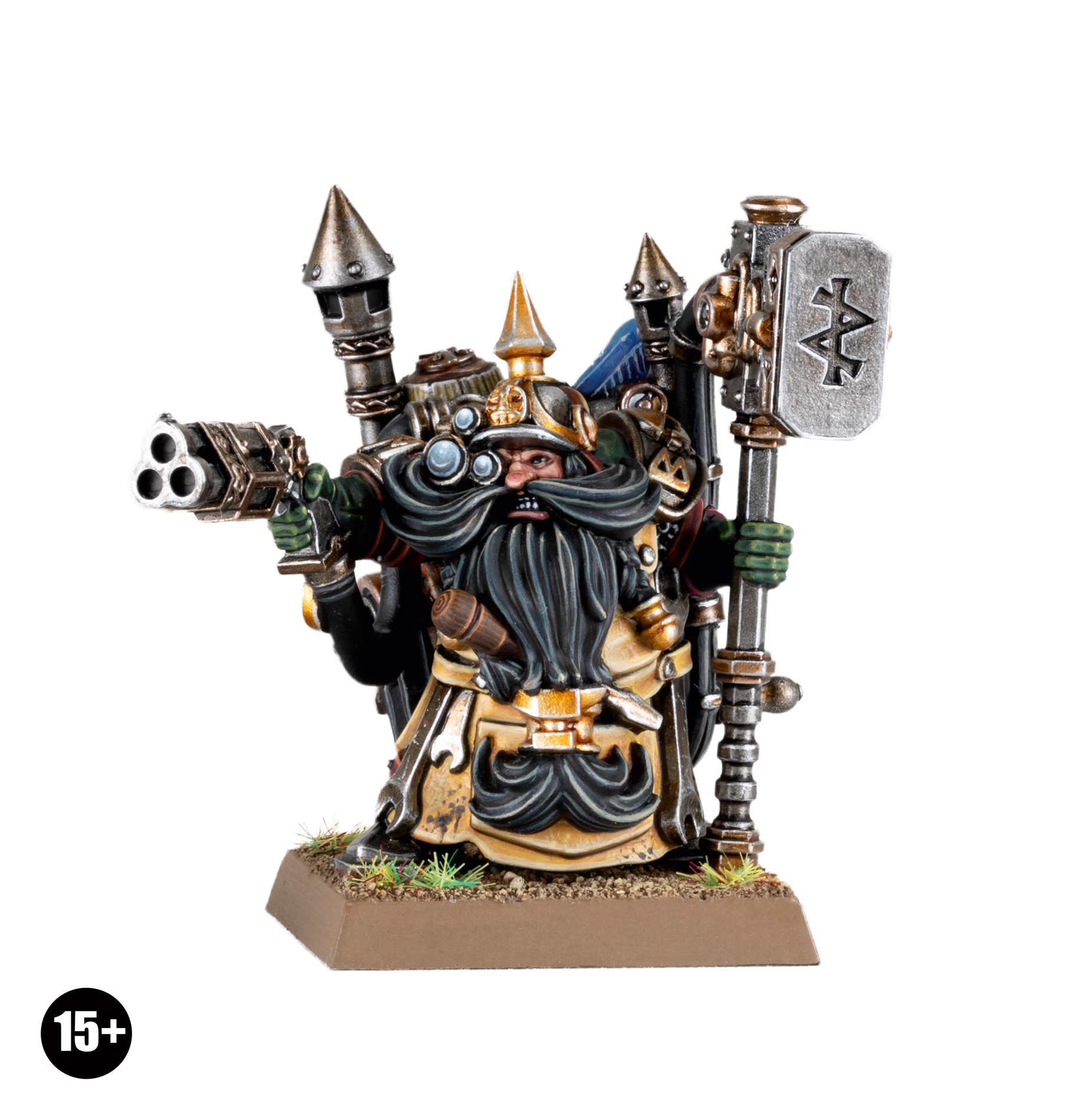 This multipart resin kit builds Burlok Damminson – an inventive (and destructive) character for Dwarfen Mountain Holds armies in games of Warhammer: The Old World. This engineering leader comes well armed with a furnace hammer and rivet gun, and wears heavy armour to offer further protection. Burlok