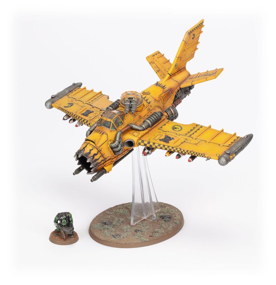 Orks love fire and it was therefore inevitable that someday a Mek would think of attaching canisters of volatile promethium to the underside of an Ork Bommer – thus the Burna-Bommer was born. Armed with burna bombs and skorcha rokkits, the Burna-Bommer performs its attack runs at as low an altitude as possible. Such a technique is, as you can imagine, not without its hazards…