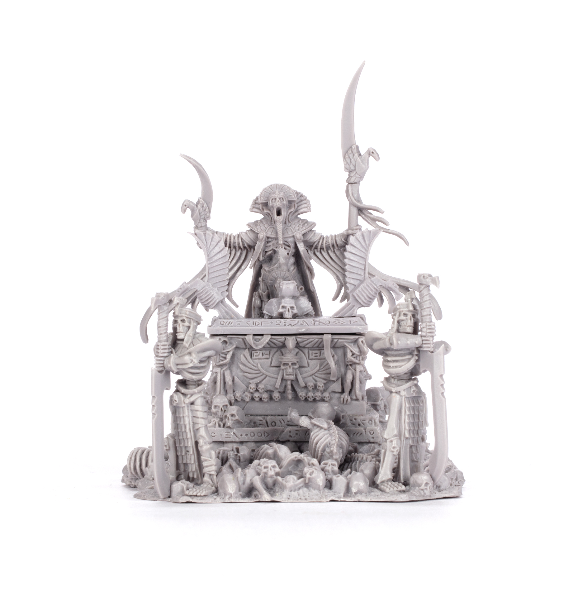 This multipart resin kit builds a Casket of Souls, an accursed testament to the wrath of the Tomb Kings of Khemri. A Liche Priest stands before an ornate