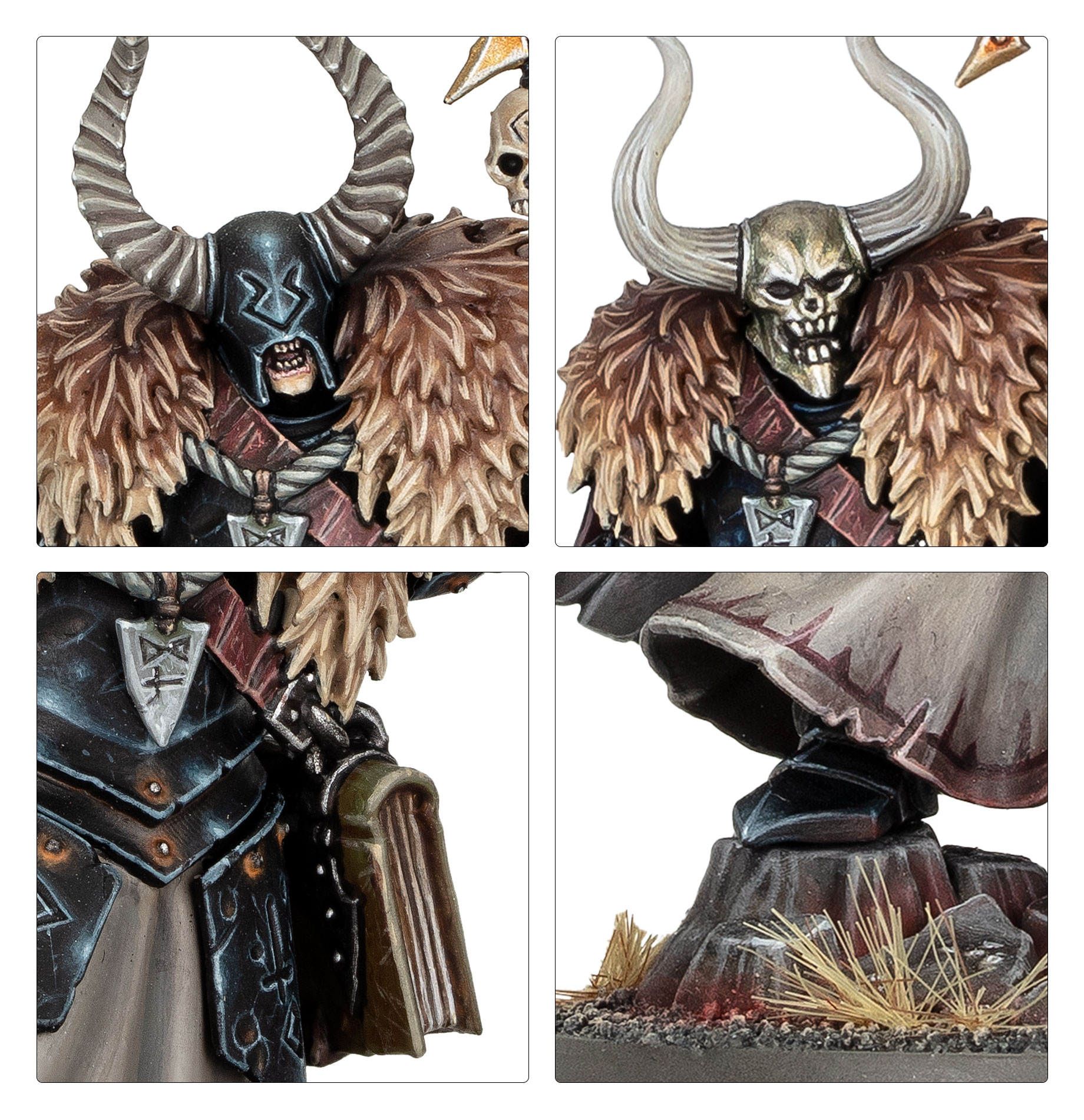 Sorcerer Lords are surrounded by sinister swirls of dark magic, emanating a miasma of doom. With their command of daemonic powers and gift of foresight, these warlocks bolster the power of their allies while unleashing their own devastating spellcraft on the enemy.