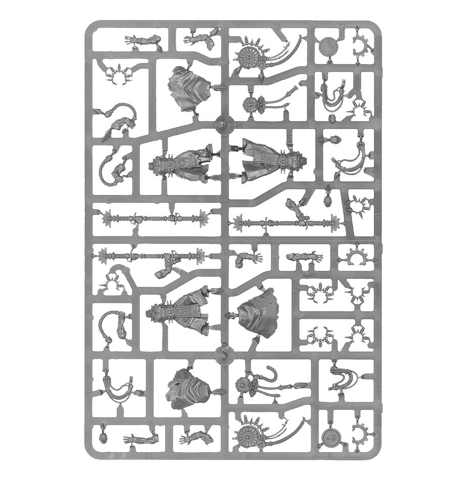 The Corpuscarii Electro-Priest comes armed with a pair of electrostatic gauntlets, with five pairs and their respective power pack assemblies included in the box. Included are five different