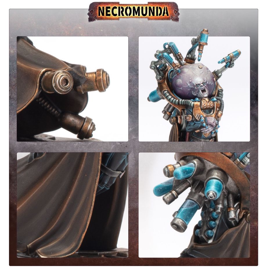 Spykers are equal parts telepathic eavesdropper and gibbering psychic powerhouse, engineered by House Delaque to serve its gang leaders. In a process that can take months or even years, an individual with a glimmer of psychic potential is dosed up with concentrated Ghast solutions – strapped into a medicae harness as their body atrophies and their cranium expands. Those who don’t suffer catastrophic biological collapse become Spykers – too weak to stand, these non-sanctioned psykers use their powers to glide across the battlefield and unleash terrifying mental assaults.