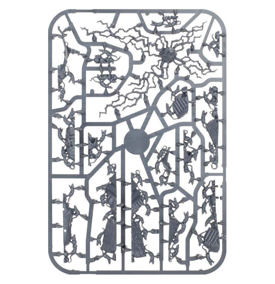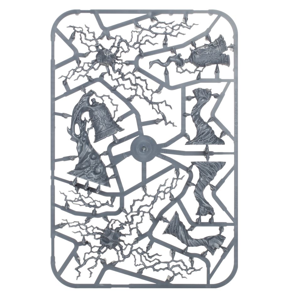 This multipart plastic kit builds a set of magical Manifestations for your Skaven armies in games of Warhammer Age of Sigmar. There are three miniatures to represent the Warp Lightning Vortex – a deadly storm of warpstone energy that disrupts movement and deals devastating damage. The all-consuming swarm of unholy vermin known as the Vermintide overwhelms nearby units, while the Bell of Doom