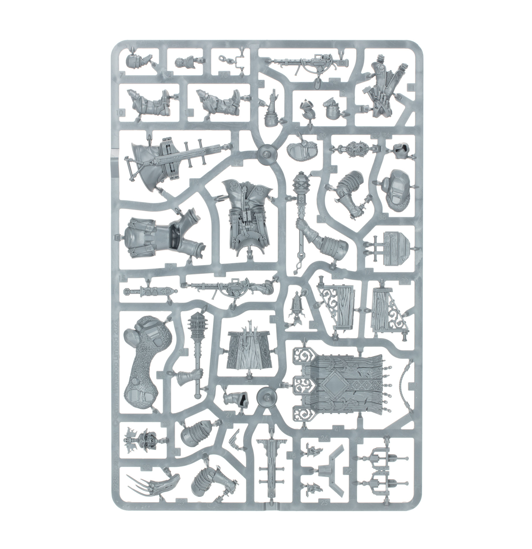 This multipart plastic kit builds one Fusil-Major on Ogor Warhulk – an expert gunnery officer, carried aloft by a brutish companion. The Fusil-Major watches the battlefield from atop their crow’s nest, which bristles with