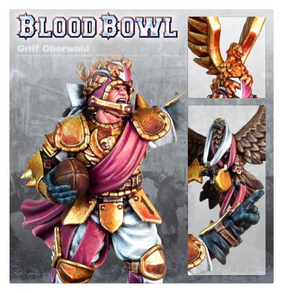 Griff Oberwald is amongst the greatest Human players to ever step onto the gridiron. Certainly, whenever the discussion of ‘greatest player ever’ crops up, Griff is one of the players mentioned as a top-ranking candidate. It wouldn’t be outrageous to suggest that the golden boy of the Bögenhafen Barons is, perhaps, the best of all time.