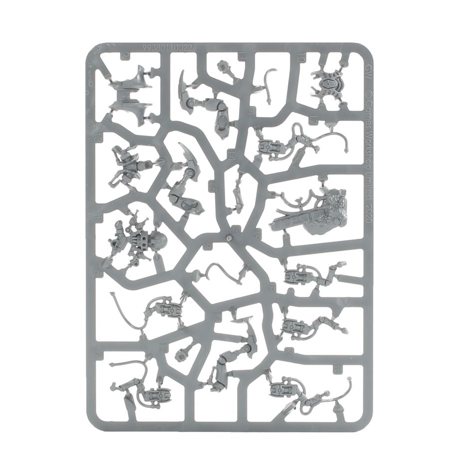 Hexmark Destroyers were once Deathmarks. Bursting from their dimensional oubliettes like ambush predators, these hunchbacked monsters unleash inescapable hails of enmitic fire. Independent ocular targeting and optimised firing patterns leave their prey with no escape.
