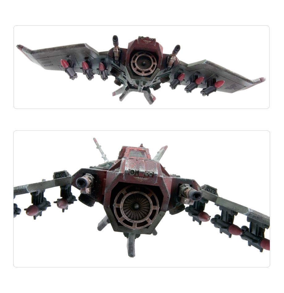 Following the Saint-Saen Crusade’s liberation of twelve worlds in the Segmentum Obscurus, STC patterns were recovered for an air superiority fighter, smaller and more agile than the iconic Thunderbolt. The Lightning has since been disseminated to other worlds with strong ties to the Imperial Navy, notably Bakka and Hydraphur, and production has recently begun within the Segmentum Solar, resulting in the Voss Pattern Lightning Strike Fighter.