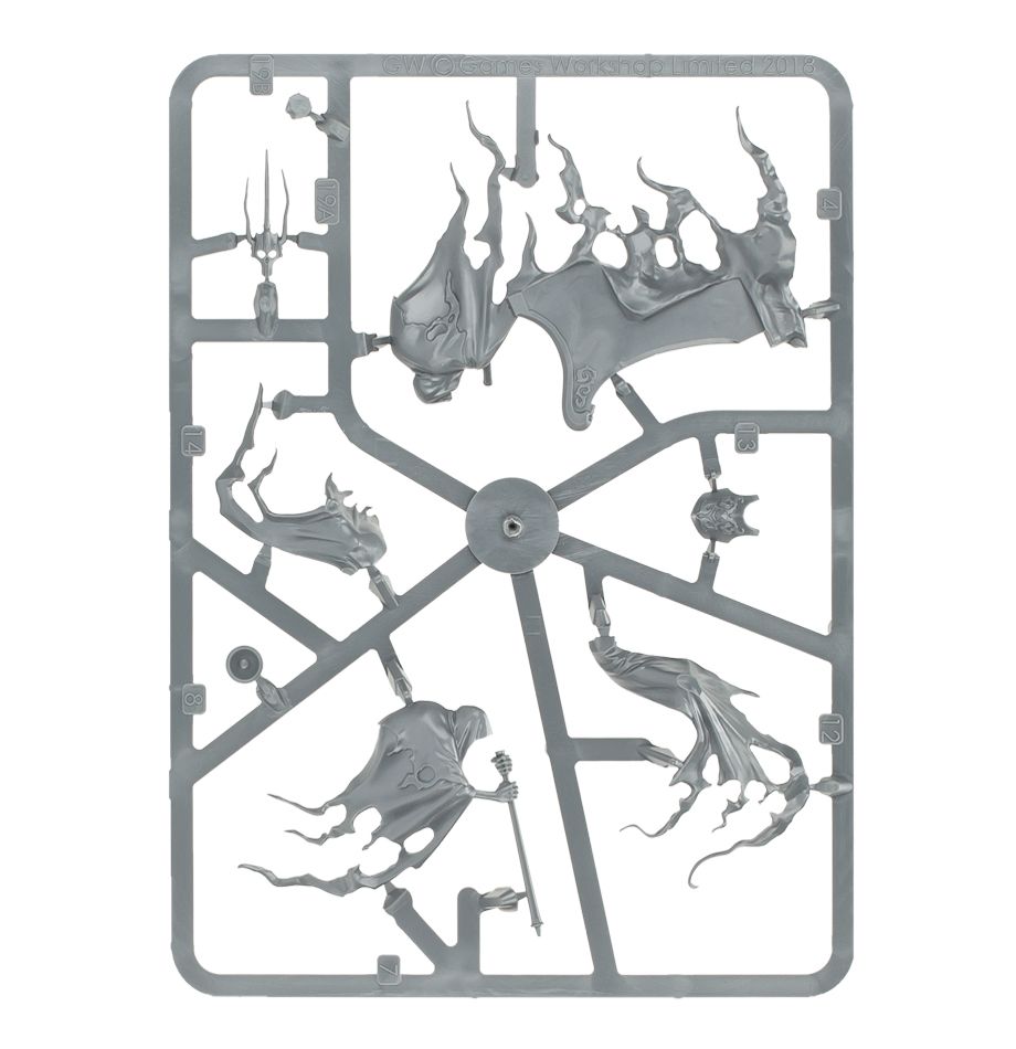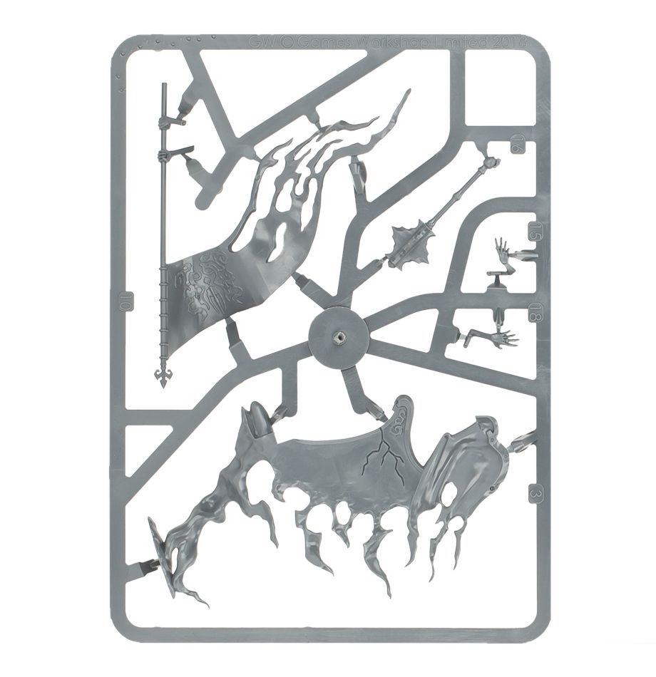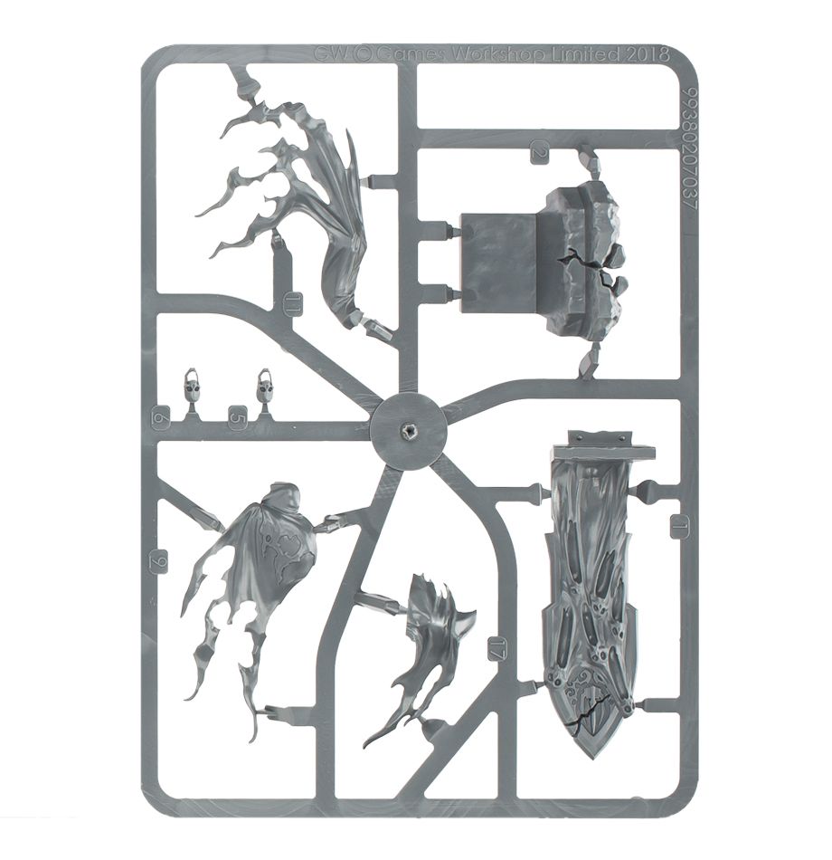 In life, Kurdoss Valentian had a ruthless desire to rule, and many were his wicked deeds to secure power. Nagash ensured that his ultimate dream was secured in name only, however, making him little more than a strongman fated to always follow the lead of Lady Olynder. The dire presence of Kurdoss Valentian is announced by dirgeful trumpets and grim proclamations of his basest deeds. The Craven King sits silent and motionless upon his drifting throne until he closes with the enemy, and then he wields the Sepulchral Sceptre to deadly effect, mercilessly slaying all whom his queen bids.