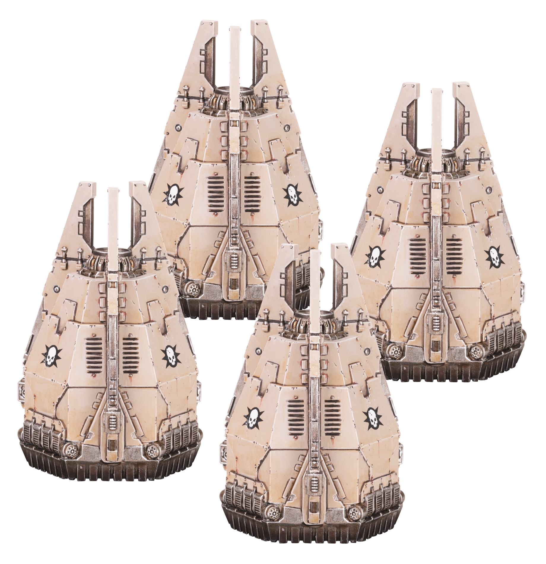 Legion Dreadnoughts require Drop Pods that are even larger than the orbital descent capsules employed by Legiones Astartes infantry, with a sturdier frame and more powerful engine designed to support their formidable machine shell. As a result, these armoured Drop Pods strike with devastating speed, making a dangerously meteoric descent from orbit to deliver their lethal cargo. These traits also allow them to be adapted into so-called Palisade Drop Pods, hosting heavy shield generators that can be deployed anywhere on the battlefield.