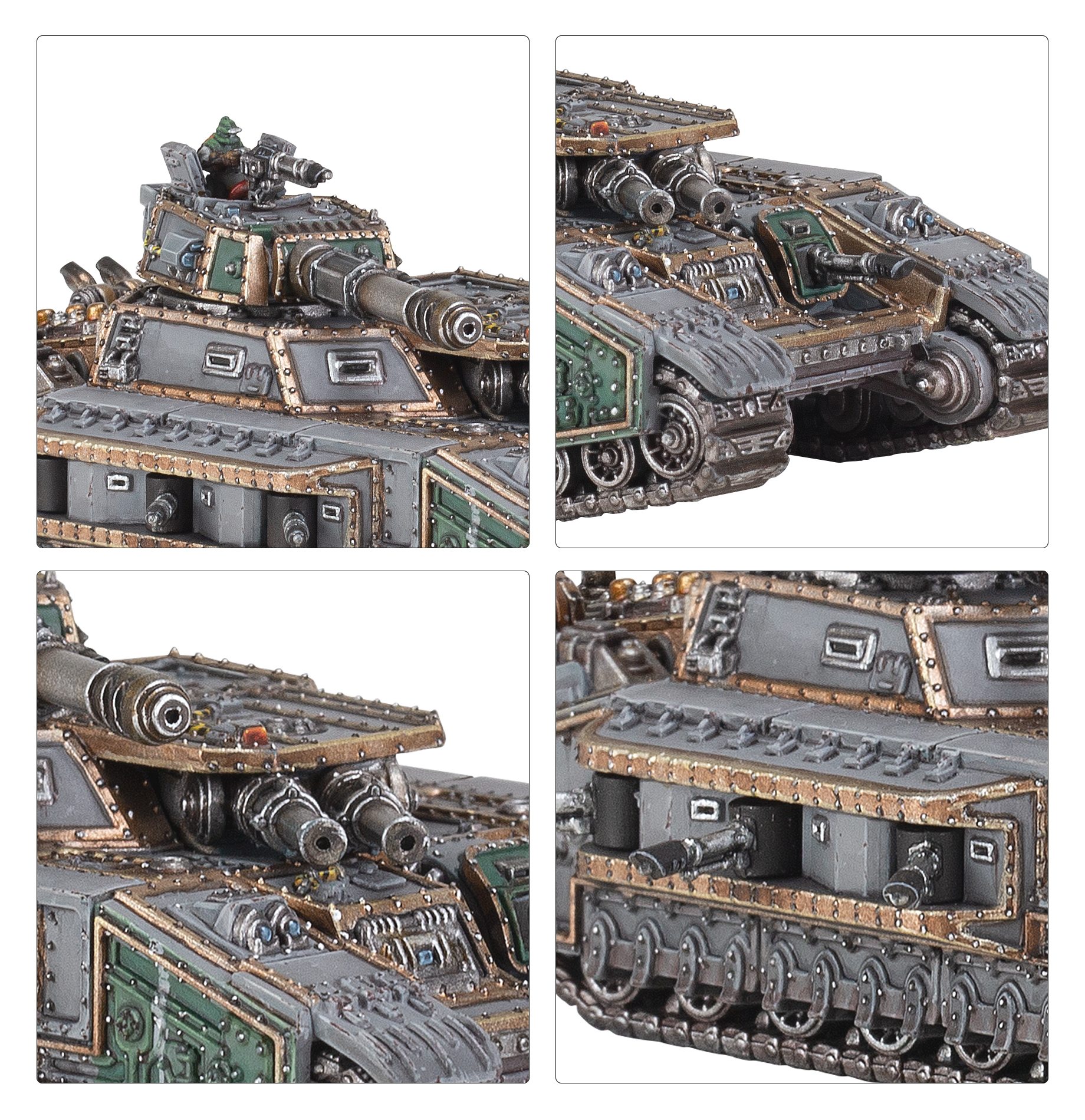 This multipart plastic kit builds two epic scale Solar Auxilia Stormhammers, super-heavy tanks for the battlefields of Legions Imperialis. Each vehicle sports an explosive Stormhammer