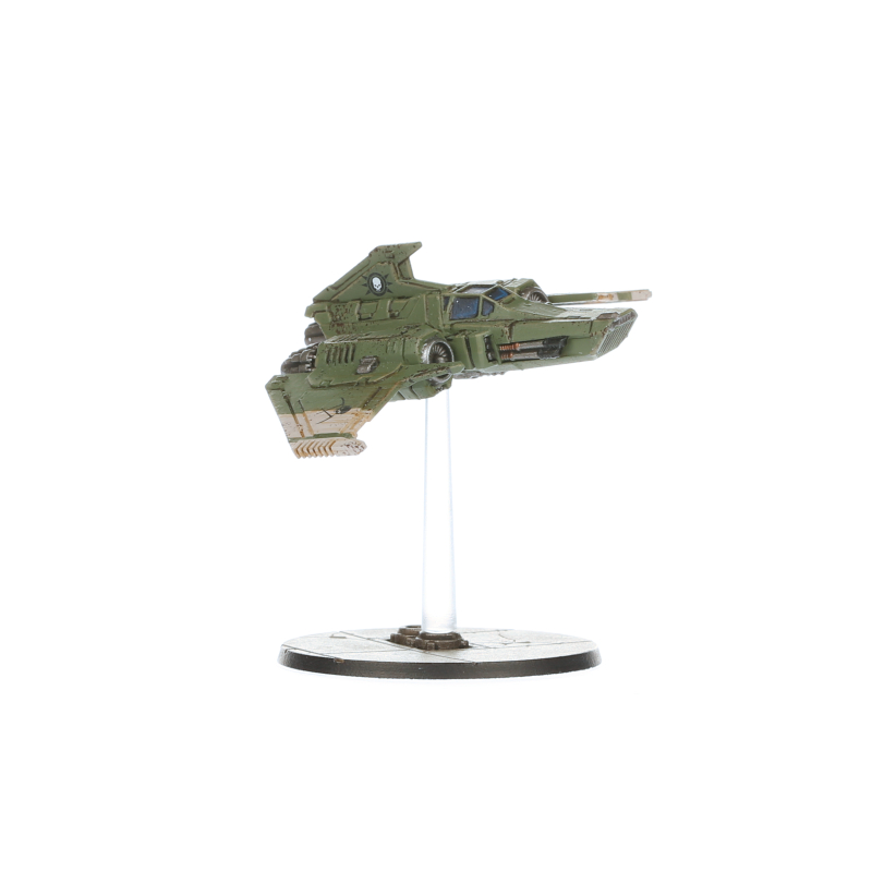 The Xiphon is a void and atmosphere capable combat craft with an ancient lineage, with many unique variations on the base design encountered on lost human colonies across the galaxy. Potent and heavily armed, the Xiphon had largely fallen out of frontline service by the end of the Great Crusade – tens of thousands of retired aircraft were swiftly pressed into service once more with the outbreak of the Horus Heresy.