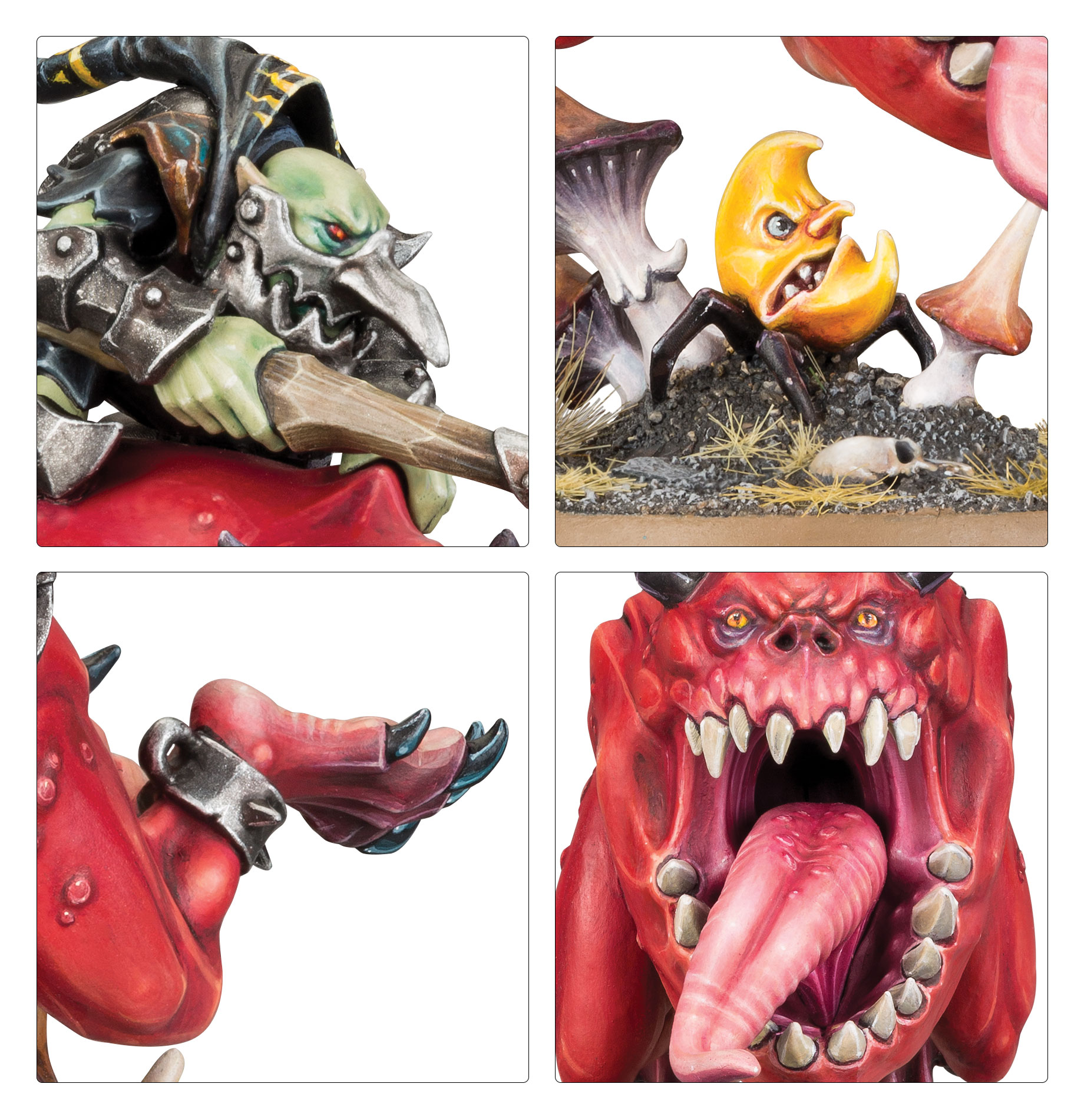 Giant Cave Squigs are especially huge and ferocious beasts that make excellent steeds for the more daring grot Loonbosses. They hurtle into battle like rubbery meteors – all fangs, prodding spikes and shrieked war cries.