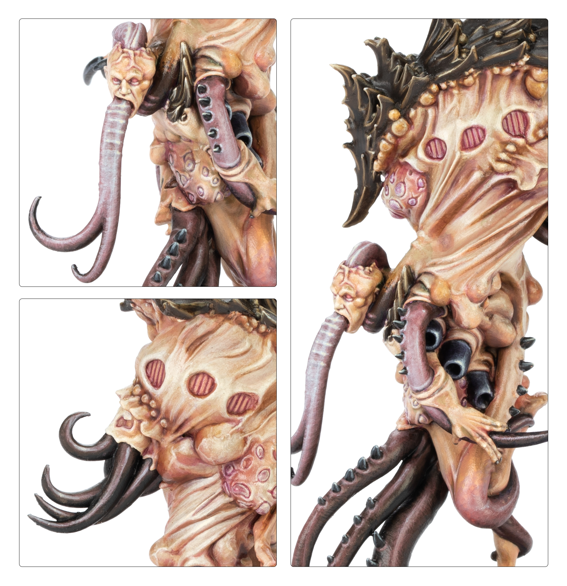 A Maltrain Coalescence is a hideous amalgamation of Genestealer and human, smashed haphazardly together. Their malformed limbs and writhing tentacles are hardly even capable of allowing natural movement, but their potent wyrd abilities enable them to float above the ground. In battle, they unleash their powers with abandon, not holding back as they have nothing to lose.