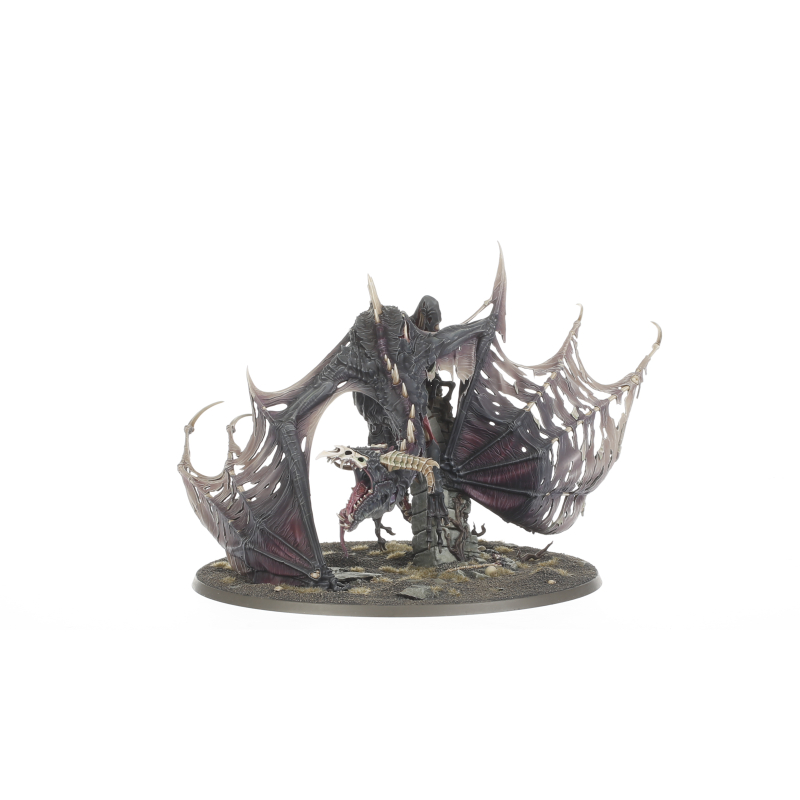 Prince Vhordrai is the most feared vampire cavalier in existence – the legendary castellan, and prisoner, of the Crimson Keep. When released from his cursed fortress to wage war against the living, Vhordrai rides forth atop the undead Draconith known as Shordemaire. This ancient beast spews gouts of pestilential breath that melt flesh and armour, before swooping in low so that its master can drive his Bloodlance through the ribs of any foes still standing.