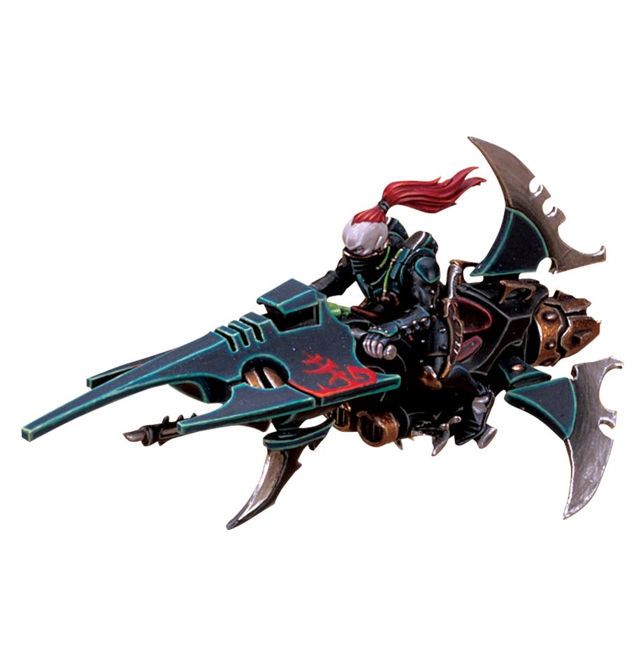 Reaver jetbikes streak across the battlefield with the same speed and agility they display during their lethal races around the Commorrite arenas. Whether dodging incoming enemy fire, decapitating foes with vicious bladevanes, or culling their victims with ferocious firepower, these high-speed killers are lethal in the extreme.