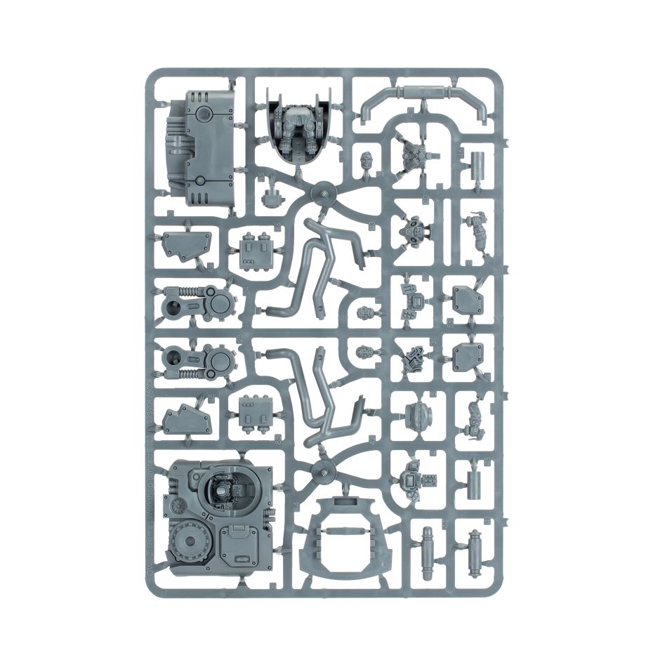 This box builds one Sagitaur, a fast-moving vehicle that combines firepower with the ability to carry a unit into battle. This sturdy six-wheeled vehicle boasts a hull-mounted twin bolt cannon, a rear