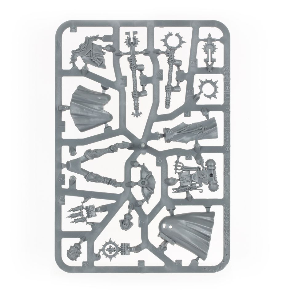 The Sister Dogmata is a figure revered and feared in equal measure within her order, as only she has the authority to condemn a Battle Sister to the ranks of the Repentia with but a word. With shouted prayers and swings of her colossal mace, the Sister Dogmata drives the Adepta Sororitas to ever greater heights of faith and fury under her steely gaze.