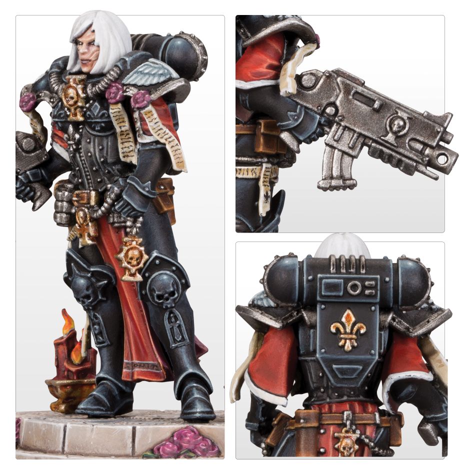 Sisters of Battle make up the vast majority of the Orders Militant of the Adepta Sororitas. Each Battle Sister is an orphan raised from birth by the Schola Progenium to believe in the righteousness of their cause and is trained from an early age in the use of a variety of weaponry. Battle Sister squads are each led by a Sister Superior, such as Amalia Novena, who is a member of the Order of the Martyred Lady.