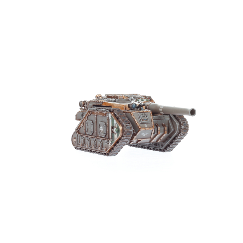 The Medusa and Basilisk artillery tanks employed by the Solar Auxilia are armoured bombardment platforms, their heavy guns mounted on a hull derived from the Leman Russ. Enclosed against enemy fire and protected from the hazardous atmospheres of toxic or alien worlds, these mobile siege batteries can keep pace with the cohort’s advance, pummelling the foe’s positions even as main line units move to engage any survivors.
