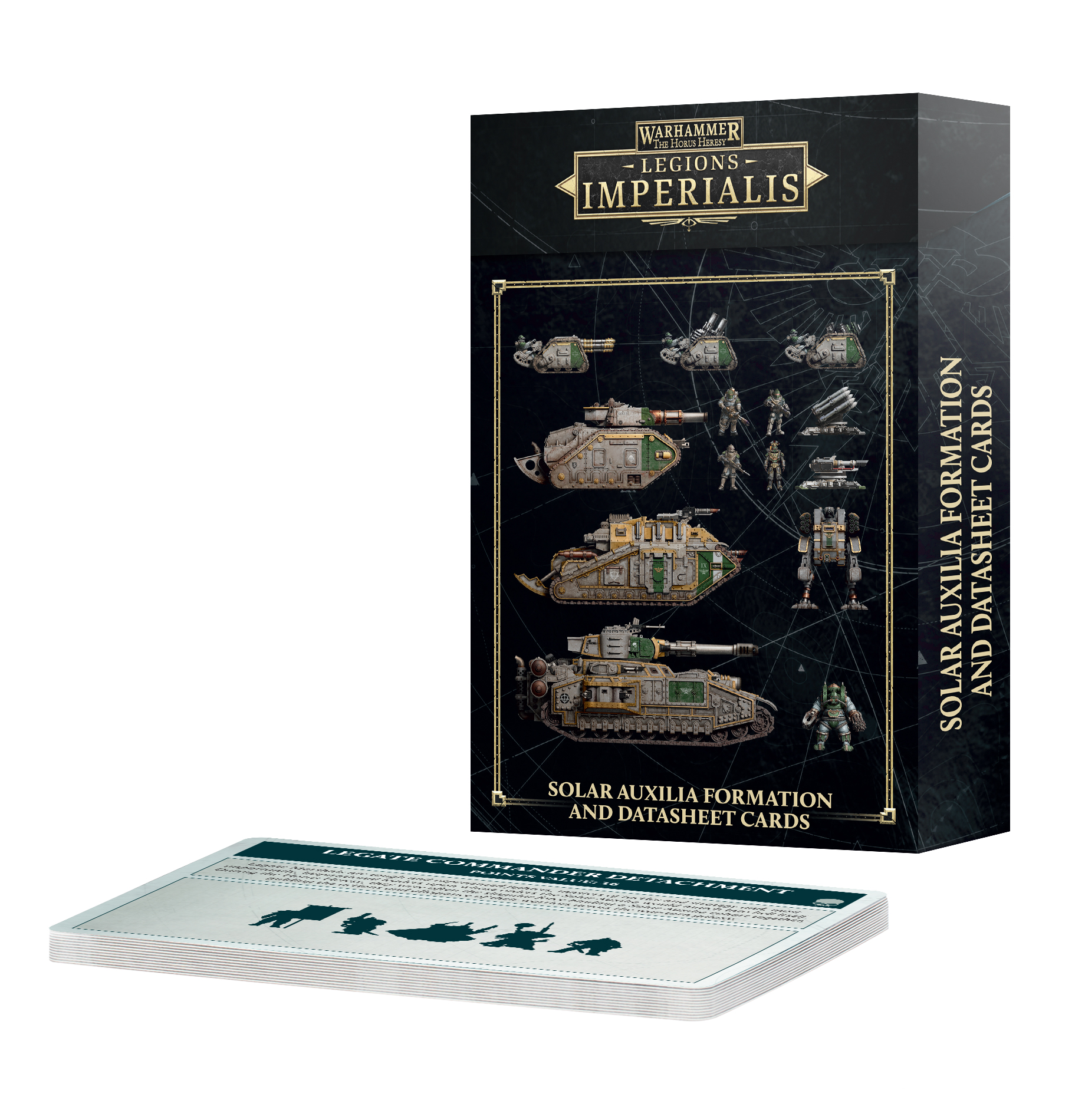 This set of 56 cards will help you keep track of your Solar Auxilia armies in games of Legions Imperialis. The Formation cards make building your force simple, and the Detachment cards let you reference rules and profiles at a glance during games, allowing you to focus on larger strategic concerns.