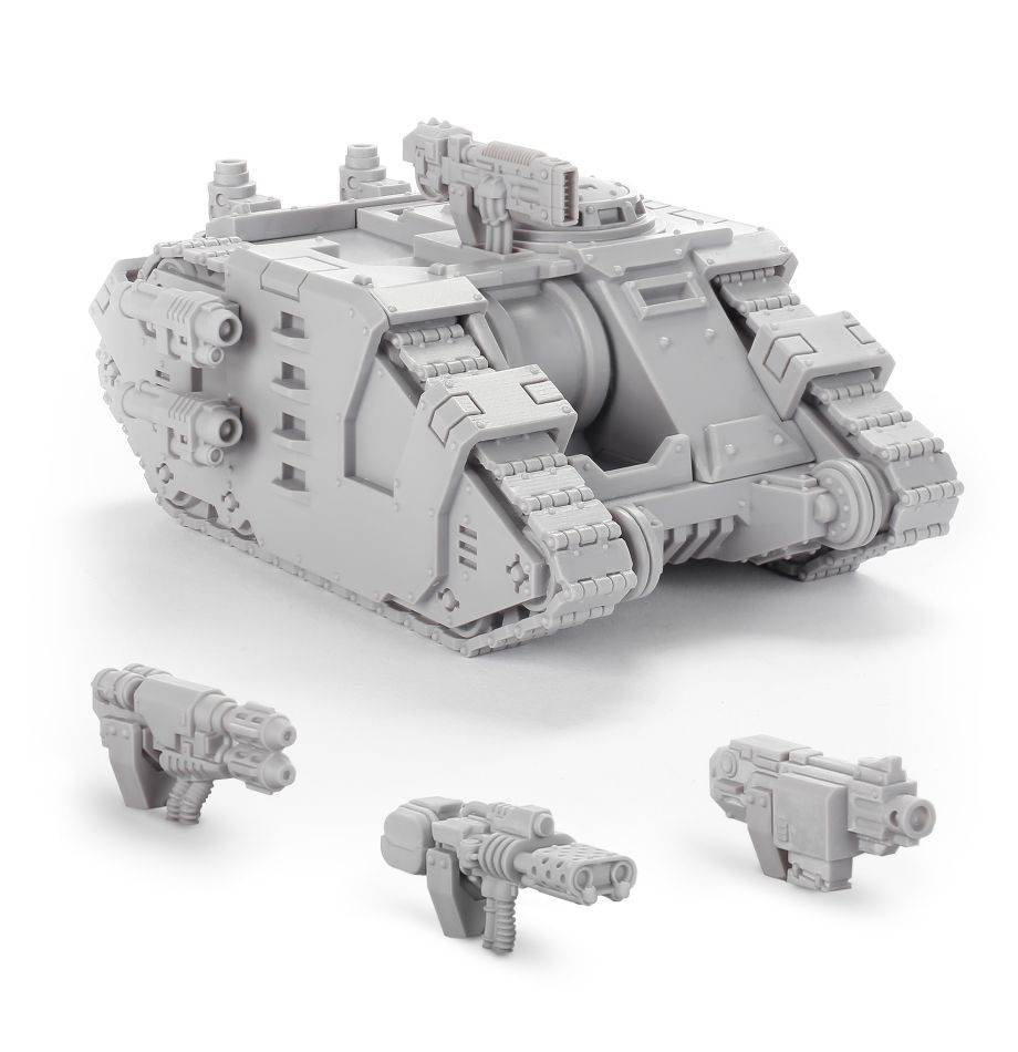Fast, rugged and heavily armed, the Sabre serves the Space Marines as a strike tank, attacking key enemy targets and destroying them long before they can pose a threat. The speed of these vehicles allows them to evade any counter-attack and reform to strike at the vulnerable flanks of the enemy army, keeping the heavy armour suppressed.