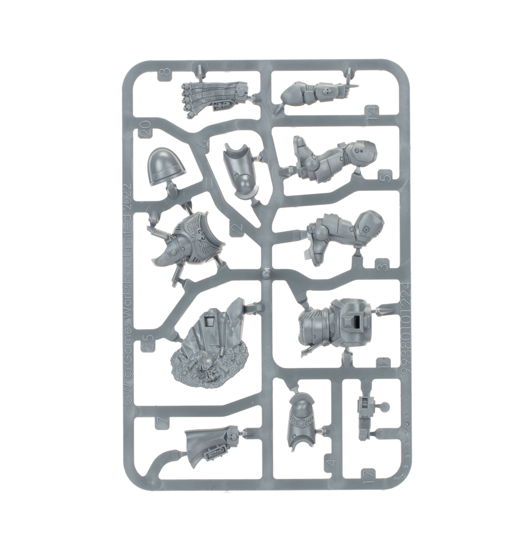 This multipart plastic kit builds one Space Marine Lieutenant, a trusted officer of his Chapter’s ranks. He comes with multiple weapon options – his left hand grips a heavy bolt pistol, a plasma pistol, or a master-crafted bolt weapon for shooting at a distance, while his right arm can wield a power