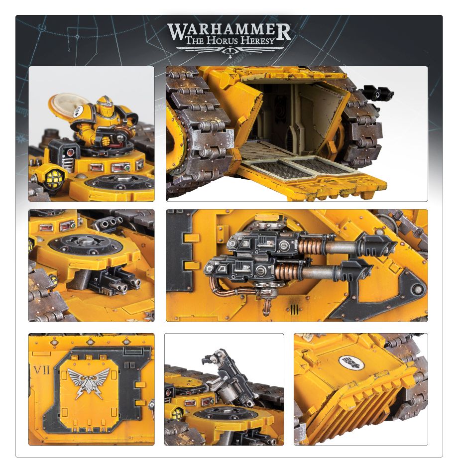 The Spartan Assault Tank is a huge armoured conveyer, designed to bear a great contingent of troops into the heart of enemy lines, weathering weapons fire that would be the death of any lesser vehicle. Protected by a sealed shell of legendarily durable plating, the Spartan’s carrying capacity exceeds anything but a true super-heavy transporter, while retaining an impressive speed across the battlefield. Its quad lascannons make the Spartan a fearsome tank destroyer, while its secondary armaments allow it to sweep infantry from its path. The Spartan takes pride of place in the armouries of