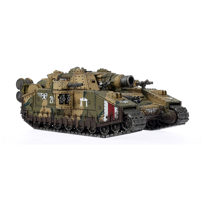 Boasting an expanded transport capacity, the Stormlord is the ultimate assault vehicle. From firing steps, the squads it carries level their own firepower at the enemy, but their shots are eclipsed by the hurricane of huge, mass-reactive shells unloaded by the twin barrels of the Stormlord’s vulcan mega-bolter.
