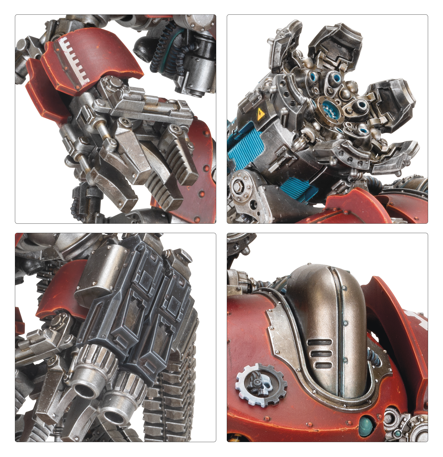 The Thanatar Siege-automata is a mobile artillery platform rather than a general battle unit, with a heavy frame built to accommodate its huge weaponry and requisite power systems. The Thanatar-Cavas configuration is armed with a Hellex pattern plasma mortar, a terrifying weapon that launches spheres of plasma into the heart of enemy fortifications. The origins of the Thanatar-Cavas remain uncertain, save that its armament is known to be the product of the forge world of Ryza, the sole locale where Hellex pattern weaponry is produced.