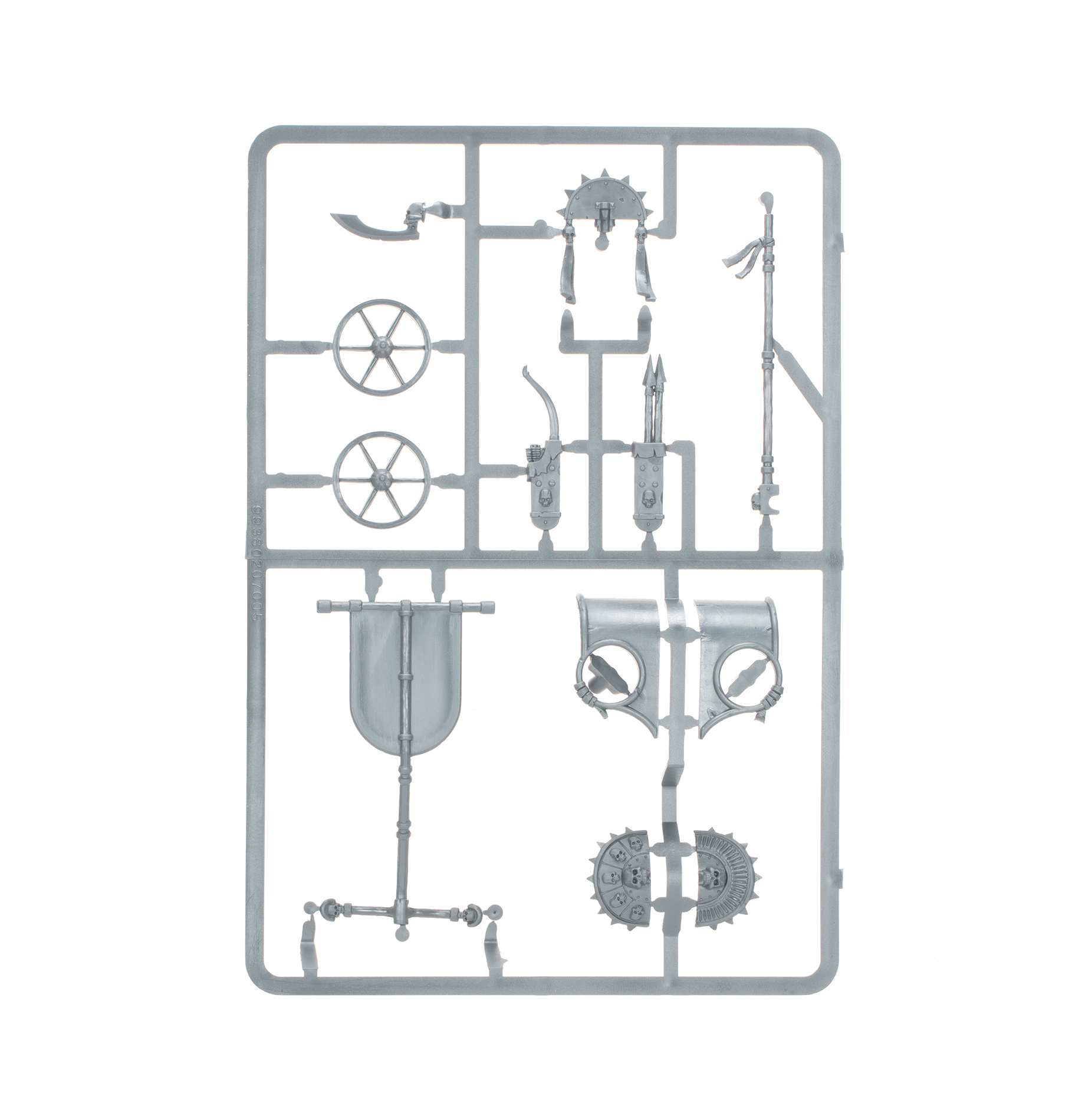 This multipart kit combines a plastic Skeleton Chariot with a metal Tomb King miniature, making for a mobile and deadly monarch. The noble rider can represent a Tomb King or Tomb Prince clad in ornate royal finery,