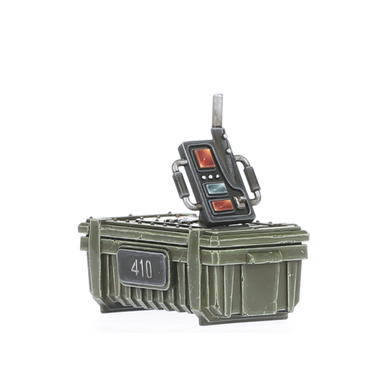 This multipart plastic kit builds four Trazior Pattern Sentry Guns, plus two ammo crates for use in games of Necromunda. Two of these four-legged sentry guns are armed with twinned grenade launchers, while two are equipped with a pair of heavy stubbers. Any gang can buy and deploy