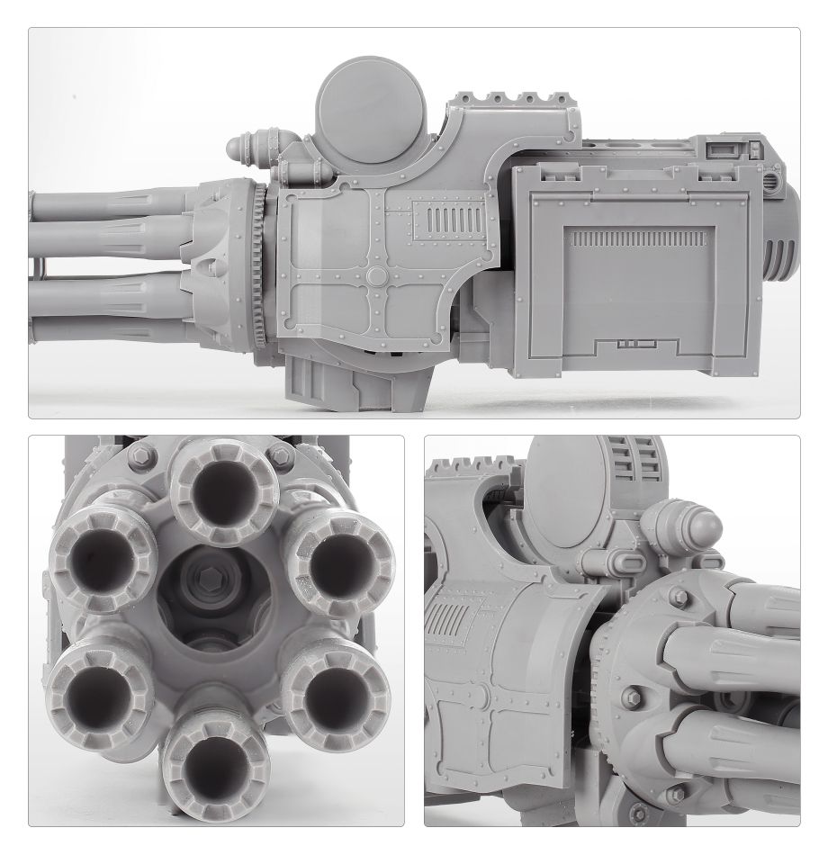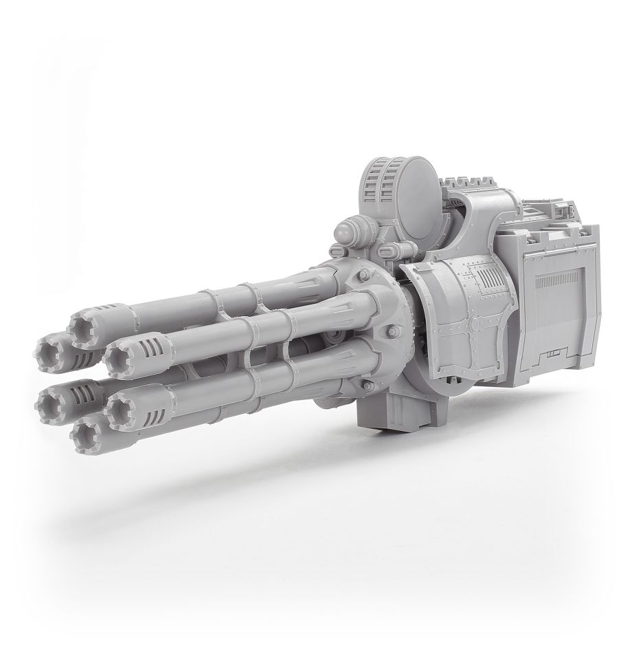 The macro gatling blaster is a monstrously destructive weapon, capable of firing thousands of explosive shells in moments, deluging foes with armour-piercing rounds that will leave them pinned and ready to be assaulted – if they’re lucky enough to survive the volley.