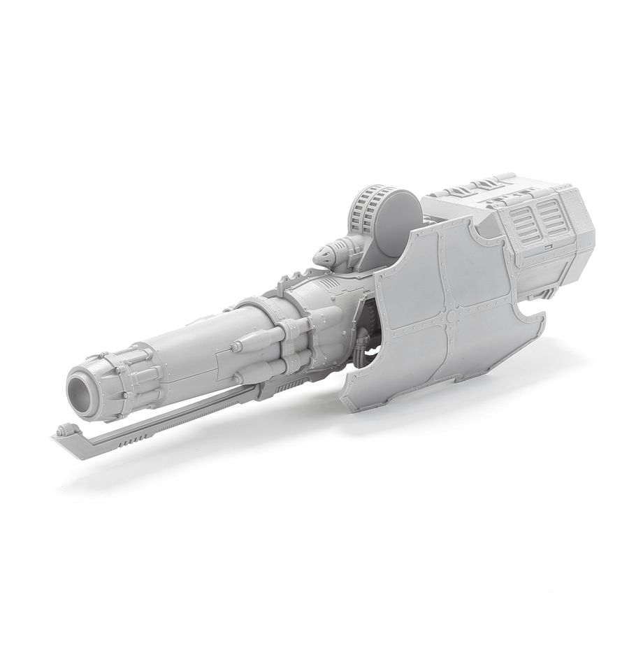The Mori quake cannon is one of the most devastating weapons a Warlord Titan can bear. The immense quake shells it fires are designed to breach metres-thick armoured fortress gates, and used against a battlefield target, they are capable of wreaking utter annihilation. The seismic shockwave these shells cause leave any enemy fortunate enough to survive slowed to a crawl, making them easy prey for the Titan’s other weapons.