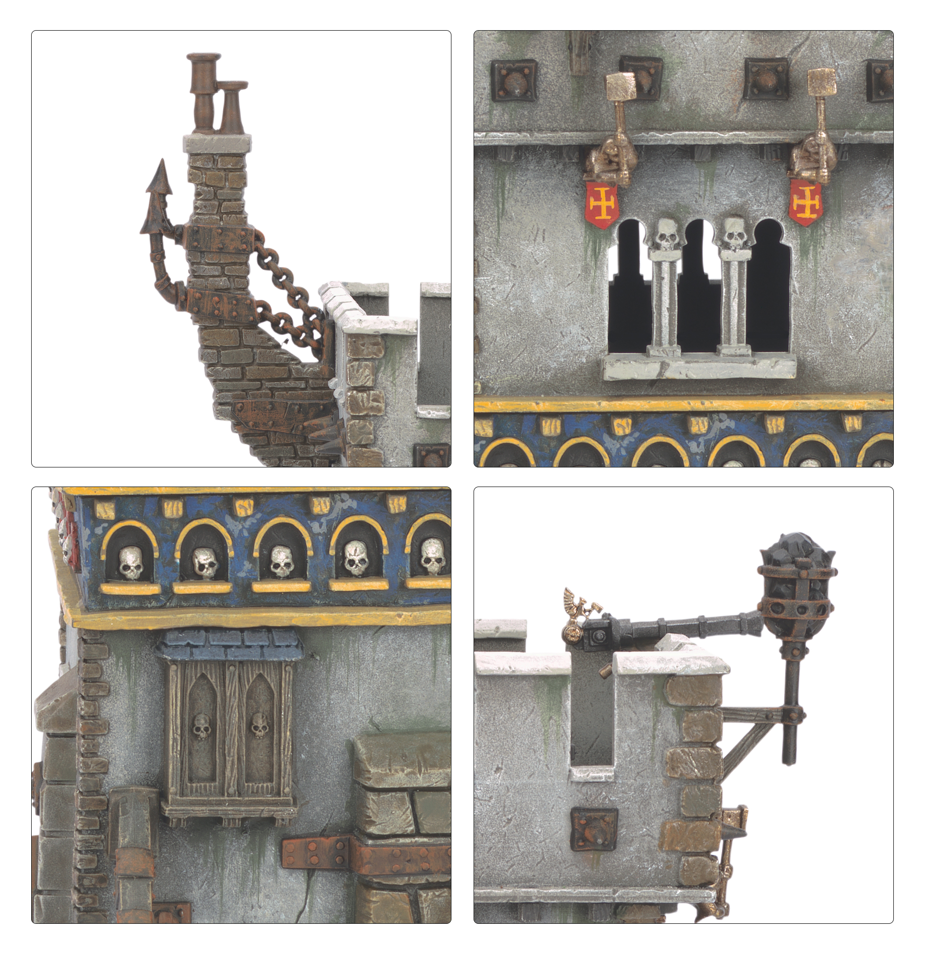 This multipart modular plastic kit builds an imposing tower with ramparts, as well as a smaller ancillary structure that can be added to the tower, or built alongside the main building. You’ll find loads of extra components to customise your tower, from an optional chimney and stairs