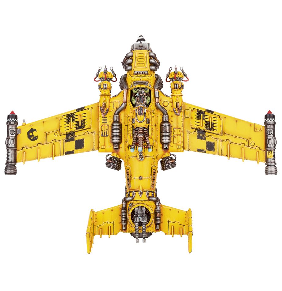 There’s nothing more satisfying to an Ork than going fast. Well, except maybe lots of dakka. And explosions. and shouting “WAAAGH!” really, really loudly. What happens when you combine these loves into a single vehicle? The Wazbom Blastajet, that’s what! Madcap, improvised flying machines covered in improbable weaponry, these ferociously shooty jets are piloted by the maddest Mekboyz, flying in tight mob formations, competing to see who can blow stuff up in the most hilarious manner. The more hapless enemies dissolved by searing energies, teleported into oblivion or hurled through the